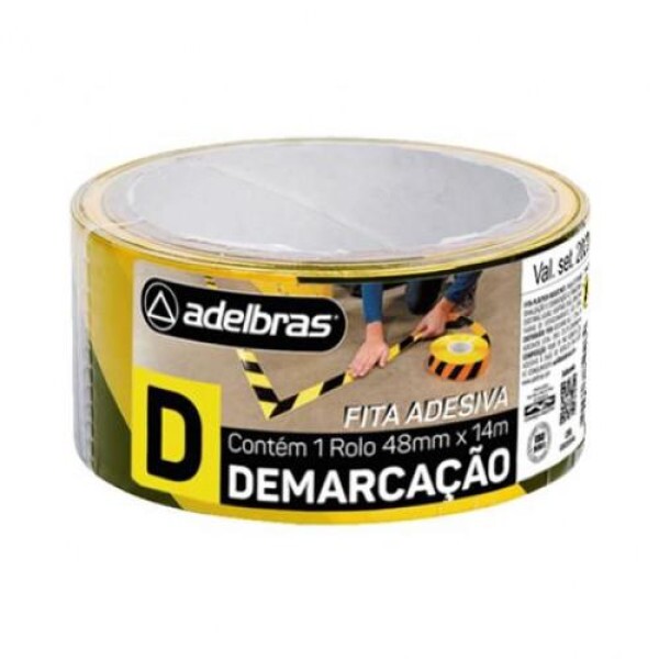 Fita Adesiva Demarcação de Solo Azebrada Amarela x Preta 48 mm x 14 M Embalagens Adelbras